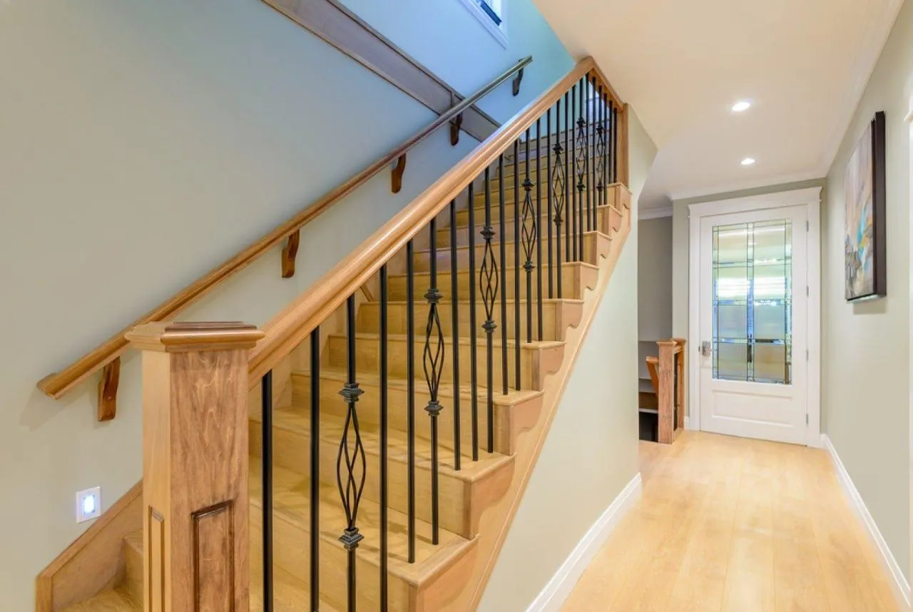 Полезный совет: Рассмотрите возможность установки деликатной подсветки ступеней. Небольшие светильники, встроенные в стену вдоль марша, сделают лестницу абсолютно безопасной в темное время суток и создадут вечером уютную атмосферу в холле.